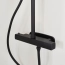 Takdusj City Svart M Ø250 har et matt svart uttrykk og leveres med både takdusj og hånddusj. Det er enkelt å veksle mellom de to ved å vri på termostatblanderen. Teleskopfunksjonen gjør det mulig å tilpasse høyden etter behov.