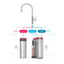Cube-kjøleenheten kombineres med en Quooker-kran med PRO3 beholder for å gi fem typer vann.
