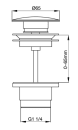 Bunnventil i rustfritt stål med pop-up og universell passform