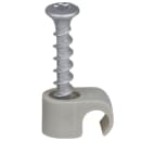 Kabelholder med skrue for rundkabel. Slagfast elastisk polypropylen - Halogenfri og UV-stabilisert. Skrue: Kraftig korrosjonsklasse C4-skrue 5 x 33 mm med Torx20-spor - montering både innendørs og utendørs.