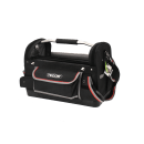 Snekkerverktøyveske med lokk, spesiallomme for sag på forsiden av vesken, bærehåndtak på toppen av vesken. Laget av D600 nylon. Den slitesterke konstruksjonen gjør den egnet for tøffe arbeidsmiljøer. På utsiden er den utstyrt med flere vanntette lommer. Stort innvendig rom med avtakbar verktøyholder. Bunnen er laget av sterk plast, som bidrar til å beskytte mot vann og gjøre posen stiv. Metallhåndtak som går langs hele veskens lengde og en myk skulderstropp gjør det enkelt å bære vesken. Avtakbar hylse for håndsag, egnet selv for 550 mm sager, sikrer optimal beskyttelse. Lokk beskytter verktøy mot fuktighet.