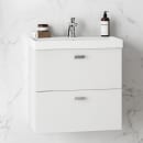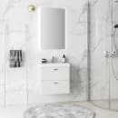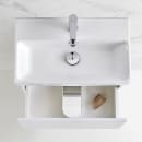 Leveransen består av servantskapet med to mykstengende skuffer. For å få et komplett baderomsmøbel må du velge servant, bunnventil, håndtak, avløpssett og blandebatteri som tilleggsprodukter.